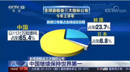全球權(quán)威航運造船機構(gòu)公布的最新數(shù)據(jù)顯示,今年上半年,全球造船業(yè)三大指標(biāo),中國再次領(lǐng)先,繼續(xù)保持世界第一的紀(jì)錄。