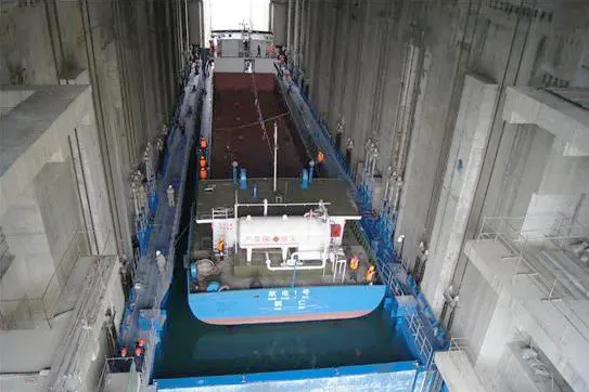而在上述水電站過船設(shè)施工程建設(shè)中,也出現(xiàn)了中國船舶集團(tuán)旗下院所、船廠、配套企業(yè)等相關(guān)單位的身影。烏江構(gòu)皮灘水電站通航工程被視為貴州融入長江、通江達(dá)海的關(guān)鍵工程。該工程線路總長2306米,概算總投資29.51億元,設(shè)計通航標(biāo)準(zhǔn)為四級航道,最高通航水頭達(dá)199米,是世界上通航水頭最高、水位變幅最大的通航工程。
