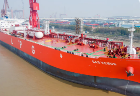 該型船為全球最大雙燃料超大型液化氣船(VLGC),配置4個(gè)超大型液罐,能夠滿載86000立方米的液化氣,如果是直接供給上海這座超大型城市,可以使用超過兩天。