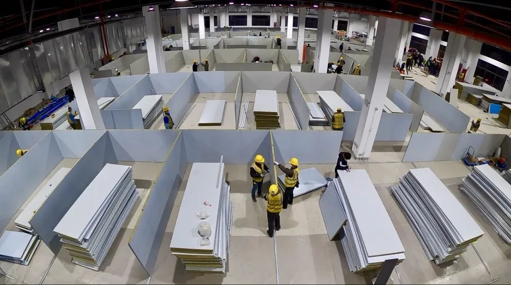 長興島疫情突發(fā),醫(yī)療資源嚴(yán)重匱乏,上海市和崇明區(qū)政府緊急啟動應(yīng)急措施,盡快建起集中隔離治療場所成了當(dāng)務(wù)之急。長興島防疫抗疫工程建設(shè)項(xiàng)目分三期,包括3個集中收治點(diǎn)和1個隔離觀察點(diǎn),總施工面積超10萬平方米,需在10天內(nèi)建成。