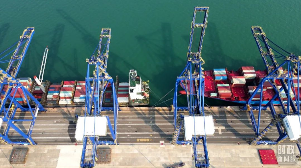 洋浦國際集裝箱碼頭小鏟灘港區(qū)??偱_記者葉飛拍攝