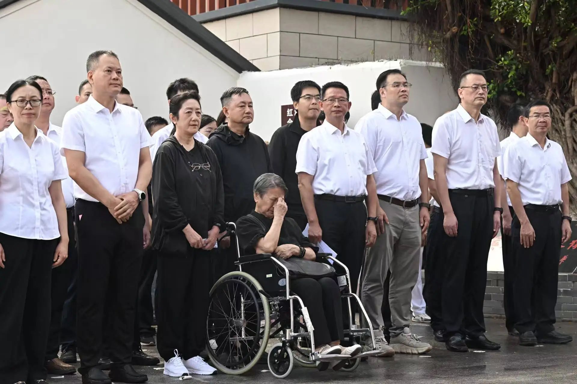 9時(shí),人們在黃旭華院士少年時(shí)代求學(xué)成長的紅樓前舉行了追思儀式?,F(xiàn)場,黃旭華院士的遺像擺放在紅樓大門前,黃旭華院士家人和生前同事、好友以及家鄉(xiāng)干部群眾、師生代表一起深情回顧了他的一生。隨后,大家一起進(jìn)入紅樓參觀紀(jì)念黃旭華院士生平事跡展。