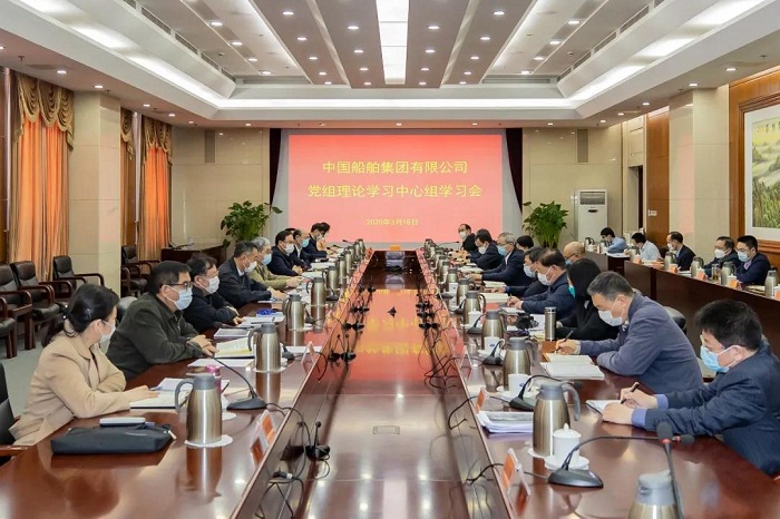 ????3月18日,中國(guó)船舶集團(tuán)有限公司召開2020年第一次黨組理論學(xué)習(xí)中心組學(xué)習(xí)會(huì),深入學(xué)習(xí)貫徹習(xí)近平總書記關(guān)于統(tǒng)籌推進(jìn)疫情防控和經(jīng)濟(jì)社會(huì)發(fā)展的系列重要講話精神和重要指示批示精神,《中國(guó)共產(chǎn)黨國(guó)有企業(yè)基層組織工作條例(試行)》和《黨委(黨組)書記抓基層黨建工作述職評(píng)議考核辦法(試行)》,2020年全國(guó)組織部長(zhǎng)會(huì)議、全國(guó)宣傳部長(zhǎng)會(huì)議、全國(guó)統(tǒng)戰(zhàn)部長(zhǎng)會(huì)議精神。中國(guó)船舶集團(tuán)黨組書記、董事長(zhǎng)雷凡培主持會(huì)議。中國(guó)船舶集團(tuán)黨組成員結(jié)合工作實(shí)際,分別談了學(xué)習(xí)體會(huì)。