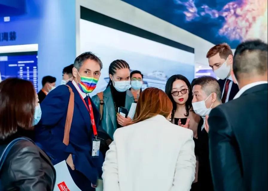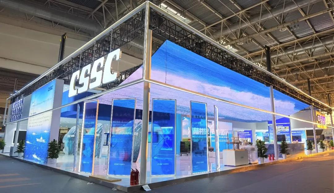 中國(guó)船舶集團(tuán)展臺(tái)摒棄了“傳統(tǒng)色彩矩陣”,用“深海藍(lán)”加 “風(fēng)機(jī)白”打造出大氣磅礴的開(kāi)合式復(fù)合空間域,細(xì)節(jié)上則采用生態(tài)為先、大道至簡(jiǎn)、科技為尚三大設(shè)計(jì)語(yǔ)言,將“風(fēng)傳送”“海推動(dòng)”“碳排放”業(yè)務(wù)生態(tài)鏈條進(jìn)行了全方位的解構(gòu),吸引了眾多觀展人士駐足。