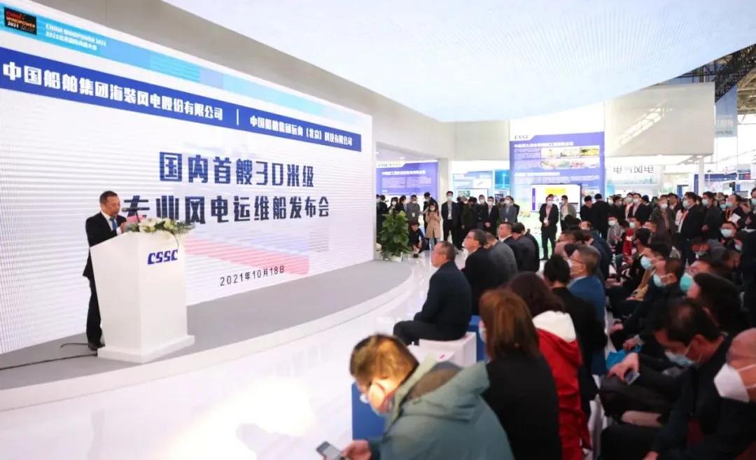 在風(fēng)能展上,中國(guó)海裝與遠(yuǎn)舟科技聯(lián)合設(shè)計(jì)制造的國(guó)內(nèi)首艘30米級(jí)專(zhuān)業(yè)風(fēng)電運(yùn)維船發(fā)布,最大裝載38噸,可抗浪高4米,可搭乘12名運(yùn)維人員和6名船員,具有高強(qiáng)度、輕重量的結(jié)構(gòu)特點(diǎn)和優(yōu)良的安全性、快速性、防腐性、耐波性等,將于今年正式投運(yùn)。