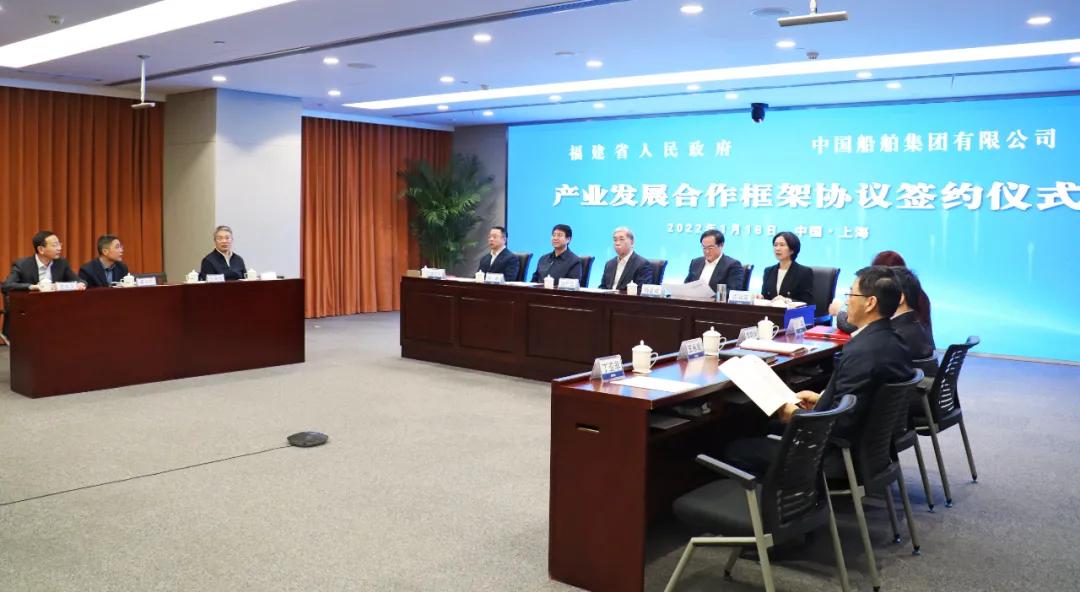 1月18日,中國船舶集團(tuán)有限公司與福建省人民政府通過“云簽約”方式簽署戰(zhàn)略合作協(xié)議。中國船舶集團(tuán)黨組書記、董事長雷凡培,黨組副書記、總經(jīng)理?xiàng)罱鸪?,黨組副書記、董事杜剛,黨組成員、總會(huì)計(jì)師賈海英,黨組成員、副總經(jīng)理盛紀(jì)綱;福建省委書記尹力,省委副書記、代省長趙龍,省委常委、常務(wù)副省長郭寧寧,省委常委、秘書長吳偕林,副省長康濤出席簽約儀式。盛紀(jì)綱、郭寧寧分別代表雙方在協(xié)議上簽字。