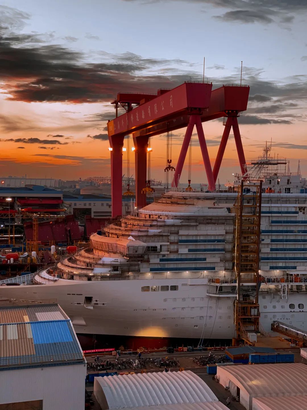 全力推進(jìn)大型郵輪設(shè)計建造是中國船舶集團(tuán)貫徹習(xí)近平總書記關(guān)于發(fā)展郵輪產(chǎn)業(yè)是利國利民重要指示精神、落實國家戰(zhàn)略、滿足人民美好生活需要的重大舉措,也是中國船舶工業(yè)轉(zhuǎn)型升級、提升中國制造在全球影響力的標(biāo)志性工程,能帶動中國郵輪全產(chǎn)業(yè)鏈快速崛起。同時,對我國建設(shè)海洋強(qiáng)國、制造強(qiáng)國、科技強(qiáng)國將產(chǎn)生重大而又深遠(yuǎn)的影響,因此被列為中國船舶集團(tuán)的“一號工程”。2019年10月18日,備受世人矚目的我國首艘國產(chǎn)大型郵輪在中國船舶集團(tuán)旗下外高橋造船正式開工點火,全面進(jìn)入實質(zhì)性建造階段,標(biāo)志著中國船舶工業(yè)正式跨入大型郵輪建造新時代。2022年8月8日,第二艘國產(chǎn)大型郵輪開工建造,標(biāo)志著中國船舶工業(yè)已初步掌握大型郵輪設(shè)計建造關(guān)鍵核心技術(shù),在開啟“雙輪戲珠”新時代的同時,向大型郵輪批量化、系列化建造邁出了具有里程碑意義的一步。