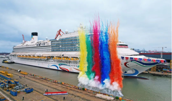 今天,我國首艘國產(chǎn)大型郵輪“愛達·魔都號”在中國船舶集團外高橋造船順利出塢。