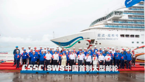 現場舉行了簡短的歡迎儀式。溫剛宣布中國首制大型郵輪完工試航所有驗證項目全部達標,試航任務圓滿完成。