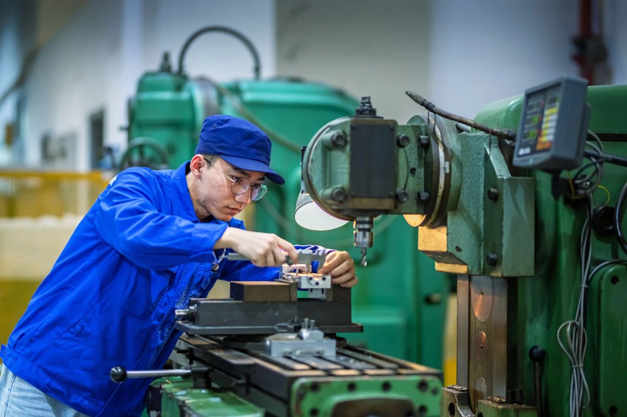 一位工人正在認(rèn)真的檢查組裝好的齒輪箱,確保其高質(zhì)量產(chǎn)出,驅(qū)動(dòng)公司產(chǎn)業(yè)發(fā)展。