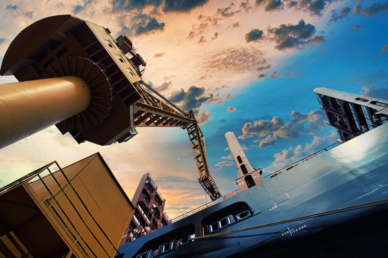 夕陽下觀看遠(yuǎn)景的船廠,另有一番意境。