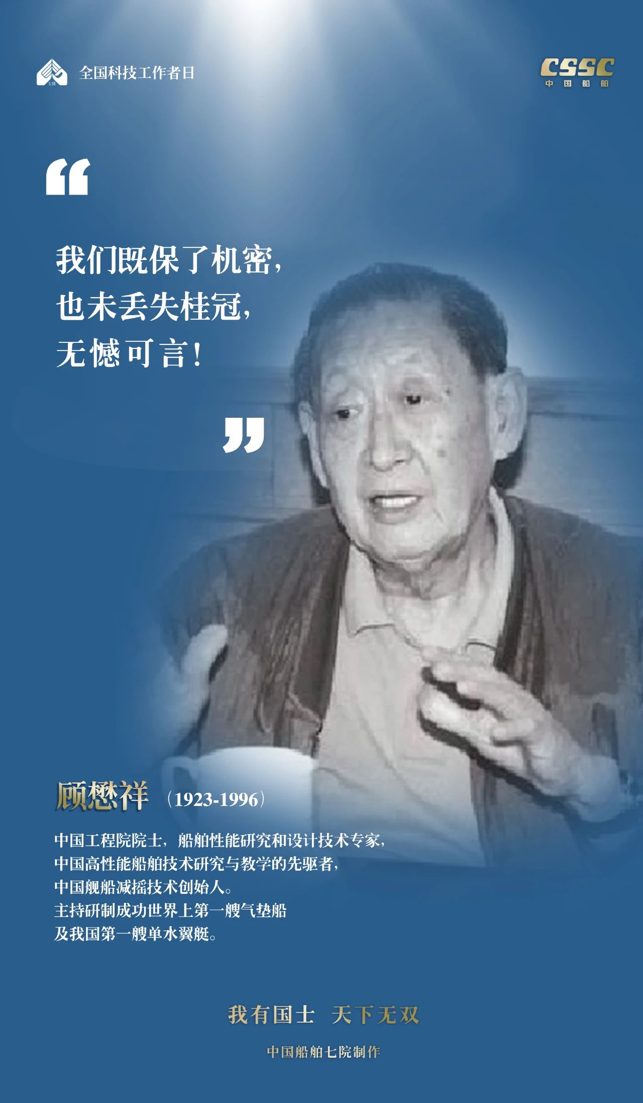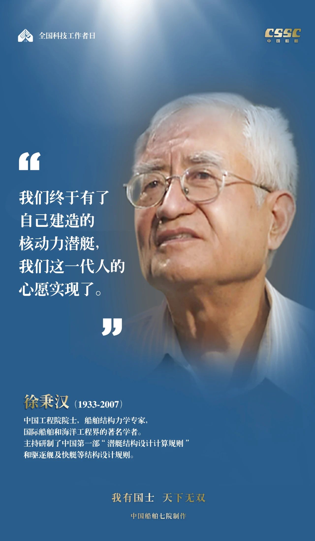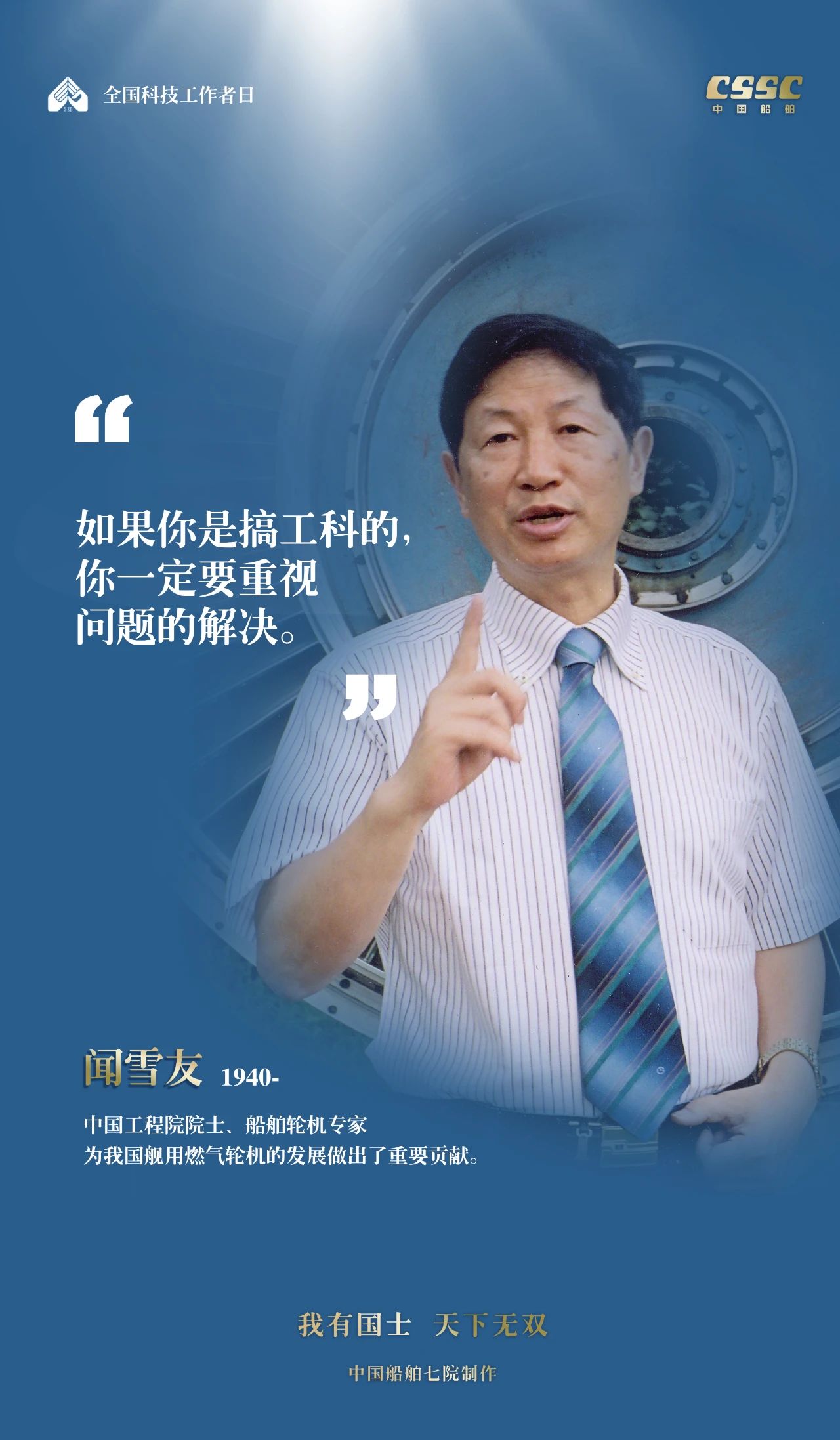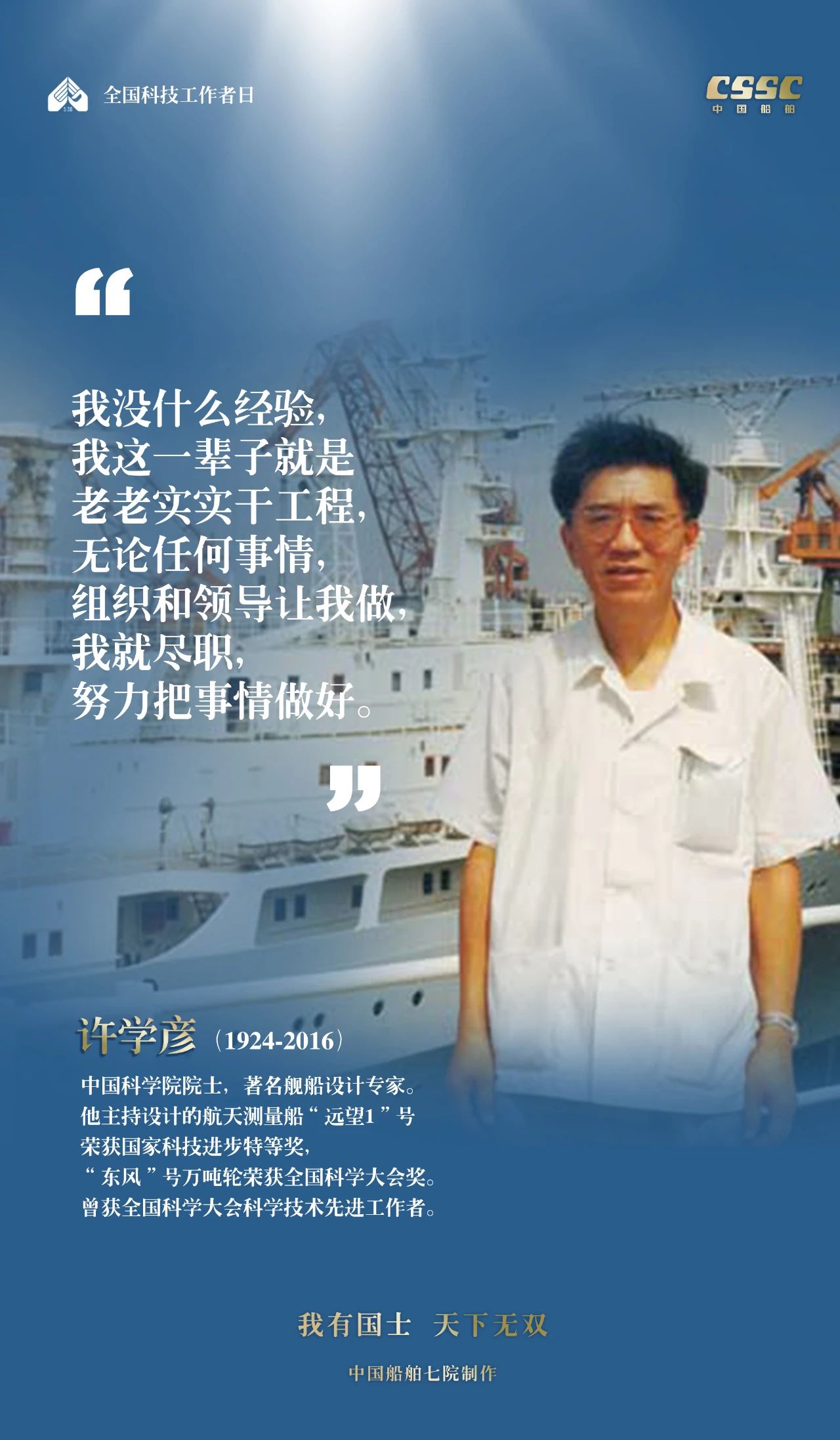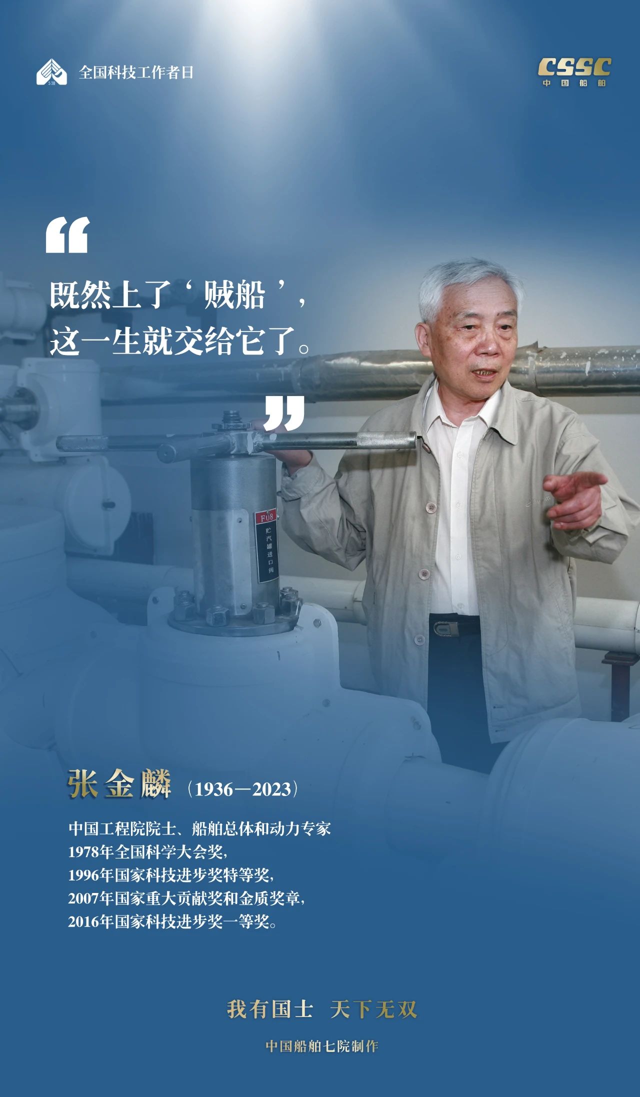 2024年5月30日,是第八個(gè)“全國(guó)科技工作者日”,一代代中國(guó)船舶人胸懷國(guó)之大者,無怨無悔勇攀科技高峰。他們的事跡也許無人知曉,他們的智慧卻是科學(xué)火種,他們用精神點(diǎn)亮希望之光,他們用勇氣探尋未來之路,他們有個(gè)共同的名字中國(guó)船舶科技工作者。
