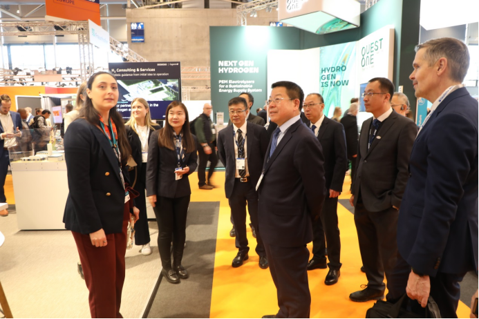 展會期間,中船集團(tuán)舉辦了電解水制氫設(shè)備、超高溫大型工業(yè)熱泵、智能裝備解決方案等30余場專題推介會,發(fā)布了全球單體最大3000立方電解水制氫設(shè)備,與德國、瑞典兩家客戶簽約電解水制氫項(xiàng)目合作協(xié)議,與全球眾多客戶進(jìn)行了技術(shù)與產(chǎn)品交流,深入推進(jìn)國際市場營銷,進(jìn)一步提升了中船集團(tuán)新興產(chǎn)業(yè)的國際影響力。此外,中船集團(tuán)還組織相關(guān)成員單位赴德國、法國等地,與林德、德希尼布和施耐德等全球知名跨國企業(yè)進(jìn)行了推介交流與合作洽談,進(jìn)一步鞏固合作關(guān)系,為后續(xù)深化合作奠定基礎(chǔ)。同時,組織與中國國機(jī)集團(tuán)、國家能源集團(tuán)等中國企業(yè),就展覽展會、品牌宣傳、國際項(xiàng)目合作等方面進(jìn)行交流,攜手拓展國際市場。
