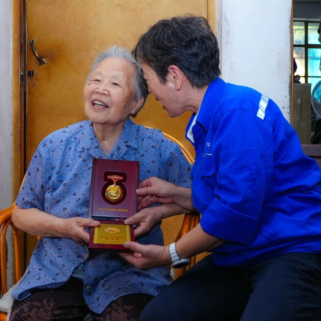 在紀(jì)念中國人民抗日戰(zhàn)爭(zhēng)暨世界反法西斯戰(zhàn)爭(zhēng)勝利80周年之際,中國船舶集團(tuán)有限公司黨組副書記、董事賈海英走訪慰問抗戰(zhàn)老兵焦英杰,頒發(fā)“中國人民抗日戰(zhàn)爭(zhēng)勝利80周年”紀(jì)念章,并代表集團(tuán)公司黨組向他致以崇高敬意和誠摯問候。