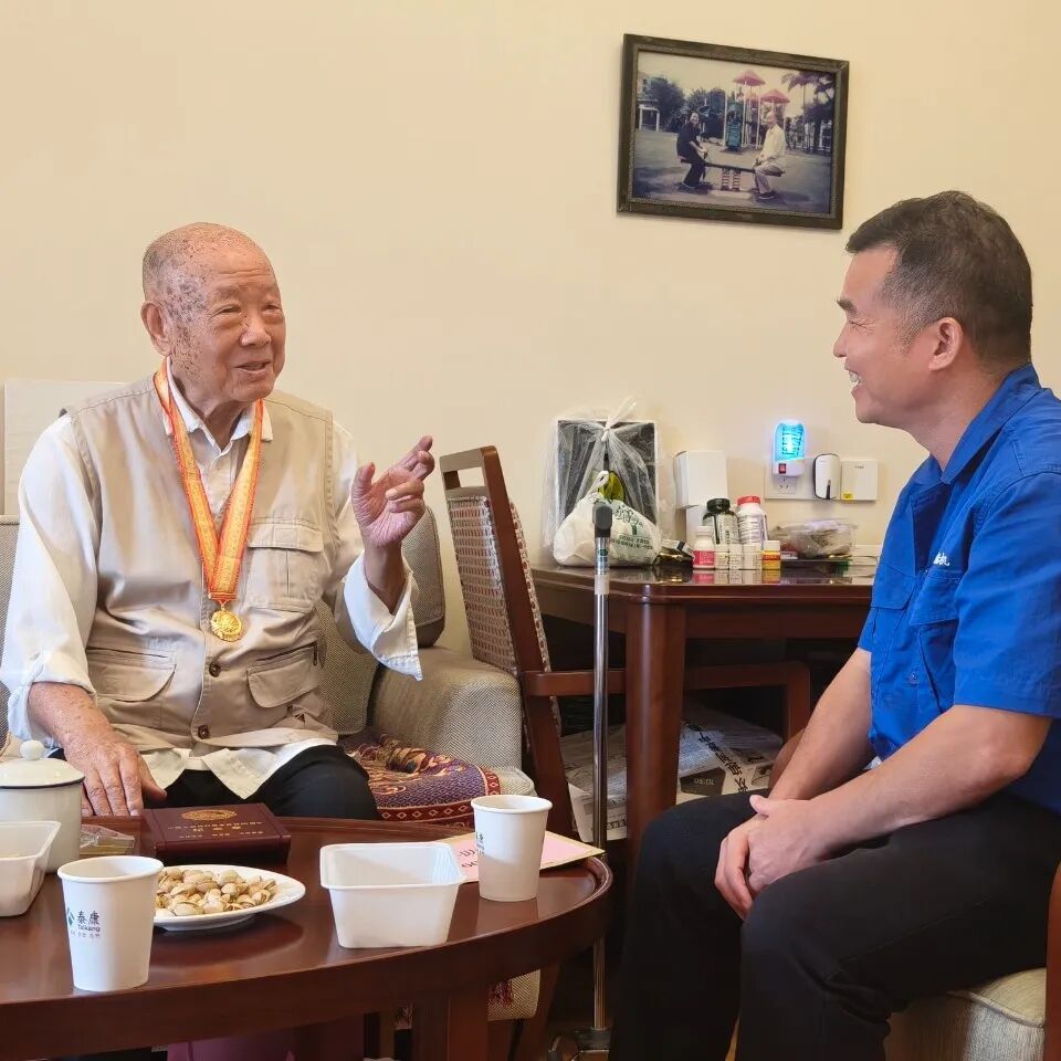 賈海英在焦英杰家中與其促膝交談,悉心詢問他的身體狀況和生活情況,專注聽他講述抗戰(zhàn)時(shí)期的崢嶸歲月,頻頻點(diǎn)頭回應(yīng)并追問細(xì)節(jié),衷心地感謝他在抗戰(zhàn)時(shí)期作出的巨大犧牲和貢獻(xiàn),并祝愿他身體健康、福壽綿長;同時(shí),叮囑總部各部門及相關(guān)單位要及時(shí)關(guān)心、了解抗戰(zhàn)老兵的生活和工作情況,使大家真切感受到集團(tuán)公司黨組的關(guān)懷與溫暖。