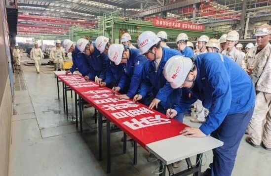 江南造船召開“質(zhì)量月”活動暨質(zhì)量改善提案活動啟動會,介紹中船集團“質(zhì)量月”活動主題和推進工作項,解讀公司“質(zhì)量月”活動內(nèi)容;宣貫質(zhì)量改善行動提案內(nèi)容,明確后續(xù)重點工作任務和時間節(jié)點;觀看質(zhì)量問題警示教育片,并組織人員進行“中船質(zhì)量,我的責任;江南質(zhì)量,由我擔當”簽字儀式。