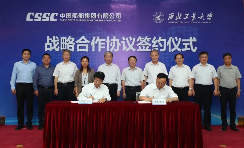 7月28日,中國船舶集團有限公司與西北工業(yè)大學(xué)在西安簽署戰(zhàn)略合作協(xié)議。中國船舶集團黨組書記、董事長雷凡培,西北工業(yè)大學(xué)黨委書記張煒、校長汪勁松出席簽約儀式。中國船舶集團黨組成員、副總經(jīng)理杜剛,西北工業(yè)大學(xué)黨委常委、副校長宋保維分別代表雙方在協(xié)議上簽字。簽約后,雙方圍繞共同服務(wù)國家戰(zhàn)略,就加強戰(zhàn)略合作、推進協(xié)同創(chuàng)新、實現(xiàn)共同發(fā)展進行了深入交流。
