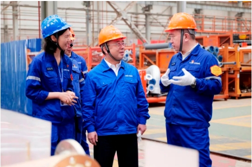 王國強(qiáng)深入科研生產(chǎn)一線,察看了船塢、智能生產(chǎn)線、重點(diǎn)實(shí)驗(yàn)室和產(chǎn)品,進(jìn)行了安全生產(chǎn)檢查,與一線科研人員、員工進(jìn)行深入交流,聽取了生產(chǎn)經(jīng)營、科技研發(fā)、人才培養(yǎng)、黨的建設(shè)等情況匯報(bào)。