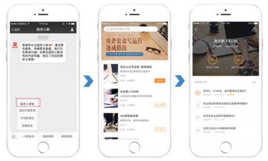 “國資小新”上線五年來,基于對粉絲需求的深度了解,先后設立了“微招聘”、“畢業(yè)去哪兒”、“新思”、“小新薦書”等欄目,并嘗試語音知識分享,為包括國企員工在內的廣大粉絲提供招聘求職信息、分享企業(yè)管理經驗、解讀國企改革發(fā)展的政策和形式,幫助粉絲實現更好的職業(yè)規(guī)劃和發(fā)展。近期推出的“小新微課”,是“國資小新”結合最新技術手段、在這一領域的又一嘗試,課程免費,立足公益,為粉絲竭誠服務,旨在提供更具權威性、普遍性、專業(yè)性的職業(yè)發(fā)展服務。