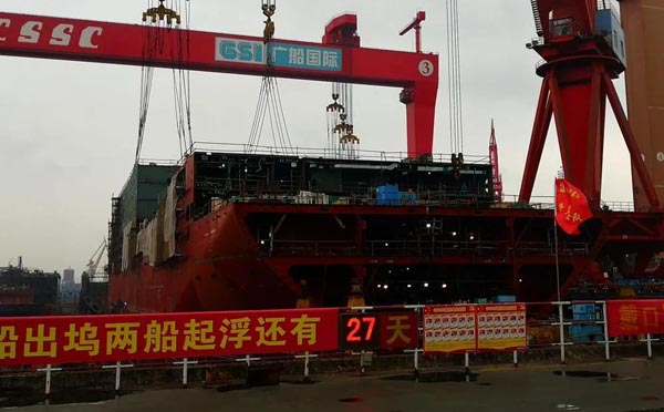 ????對于如此重要的設(shè)備,廣船國際總裝部甲裝二課,從3月2日起開始對這3塊跳板進行裝焊,經(jīng)過3天2夜的奮戰(zhàn)全部裝焊完成!