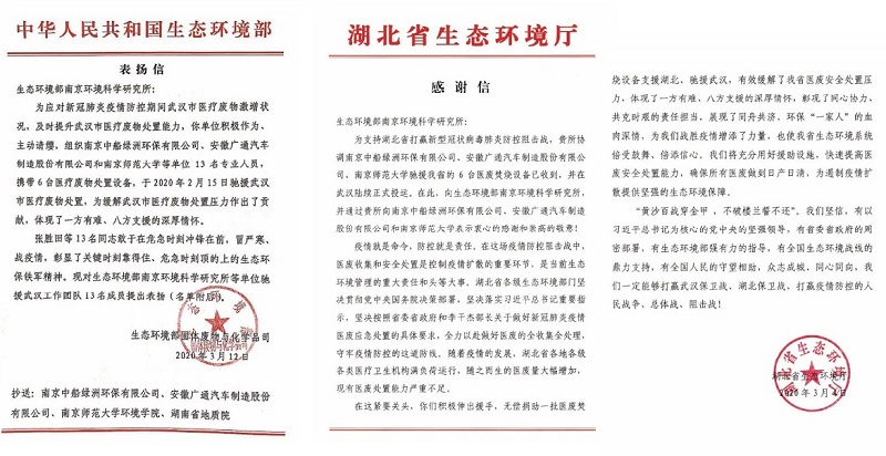 ????近日,國家生態(tài)環(huán)境部、湖北省生態(tài)環(huán)境廳分別發(fā)出表揚信和感謝信,對中國船舶集團所屬中船綠洲等在疫情防控期間作出貢獻的單位給予高度贊揚,表示衷心的感謝,并對包含中船綠洲旗下環(huán)保公司陳紀賽、陳良義、王小峰、周浩在內(nèi)的13名生態(tài)環(huán)境“鐵軍”提出表揚。