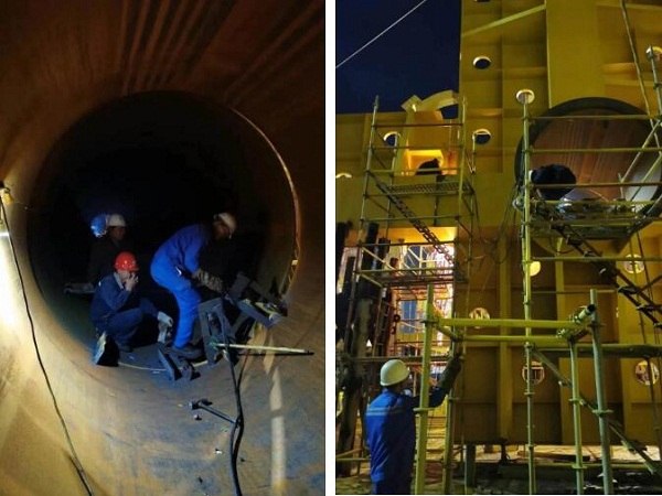 ????趕節(jié)點(diǎn)期間,項(xiàng)目團(tuán)隊(duì)主動(dòng)放棄節(jié)假日休息,每天通宵輪流作業(yè)。一線工班和施工隊(duì)人員更是不論白天黑夜,持續(xù)做好吊裝分段,合攏口裝配焊接等工作,為項(xiàng)目開(kāi)展不斷奮戰(zhàn)。