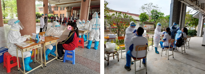 ????當天傍晚,兩家醫(yī)院順利完成了852名學生的咽拭子采樣工作。