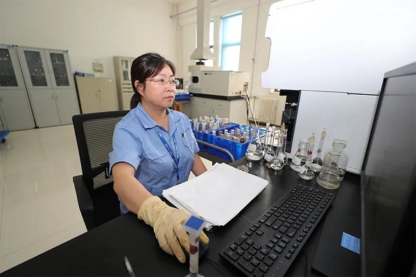 △七二五所高級工程師杜米芳正在進(jìn)行艦船鈦合金微量元素快速分析方法試驗(yàn)