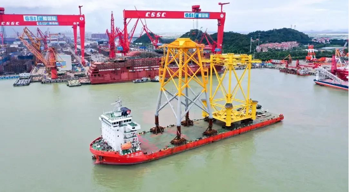 日前,由中國(guó)船舶集團(tuán)旗下廣船國(guó)際承建的廣東陽(yáng)江南鵬島300兆瓦海上風(fēng)電項(xiàng)目首套導(dǎo)管架及輔助平臺(tái)順利交運(yùn)。這是廣船國(guó)際承建并交運(yùn)的首批首個(gè)風(fēng)電導(dǎo)管架,也是目前國(guó)內(nèi)最大的風(fēng)電導(dǎo)管架,標(biāo)志著廣船國(guó)際在風(fēng)電業(yè)務(wù)領(lǐng)域?qū)崿F(xiàn)了經(jīng)營(yíng)、生產(chǎn)、交付全環(huán)節(jié)突破,對(duì)后續(xù)承接風(fēng)電項(xiàng)目業(yè)務(wù)、拓展風(fēng)電市場(chǎng)具有重要意義。