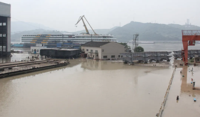 8月19~20日,長(zhǎng)江洪峰先后到達(dá)東港船舶和川船重工。東港船舶船臺(tái)碼頭、104廠房、鋼結(jié)構(gòu)新堆場(chǎng)、103總拼廠房被淹。川船重工2-4、2-5、2-6室內(nèi)船臺(tái),涂裝廠房、主機(jī)庫、變壓站、下水斜架絞車房等主要生產(chǎn)場(chǎng)地被淹,廠房?jī)?nèi)進(jìn)水已達(dá)1米深。