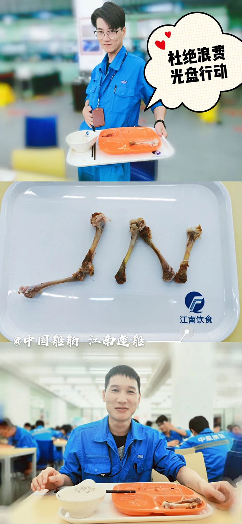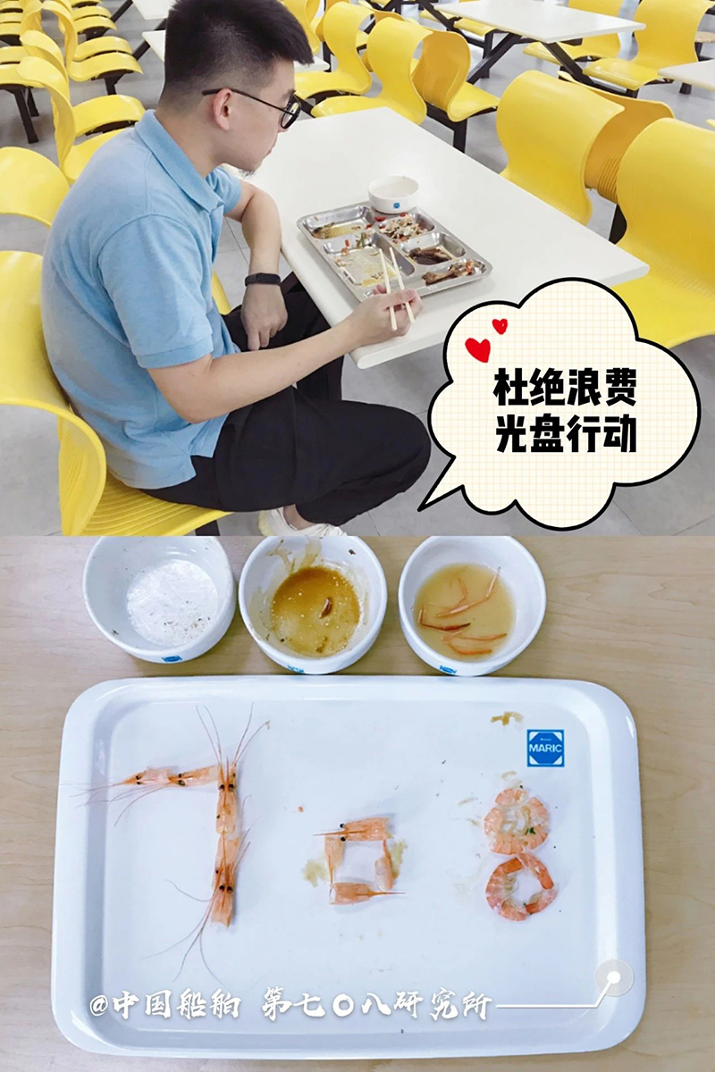 “誰(shuí)知盤(pán)中餐,粒粒皆辛苦?!? 自古以來(lái) 敬天惜糧、勤儉節(jié)約就是 中華民族傳統(tǒng)美德 中國(guó)船舶集團(tuán)多家成員單位 用實(shí)際行動(dòng) 杜絕“舌尖上的浪費(fèi)”