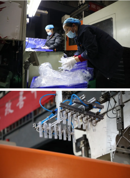 為保障防疫物品供應,春節(jié)期間,前衛(wèi)公司精密模塑產業(yè)生產車間24小時不停機。各機臺滿負荷運轉,每天生產咽拭子棉簽棒1000萬支,一次性保存管70萬支,為全國核酸檢測能力的提升提供了強有力的保障。