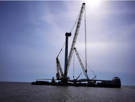 同日,中國海裝如東協(xié)鑫項目完成3臺機組吊裝,H3項目完成1臺機組吊裝。