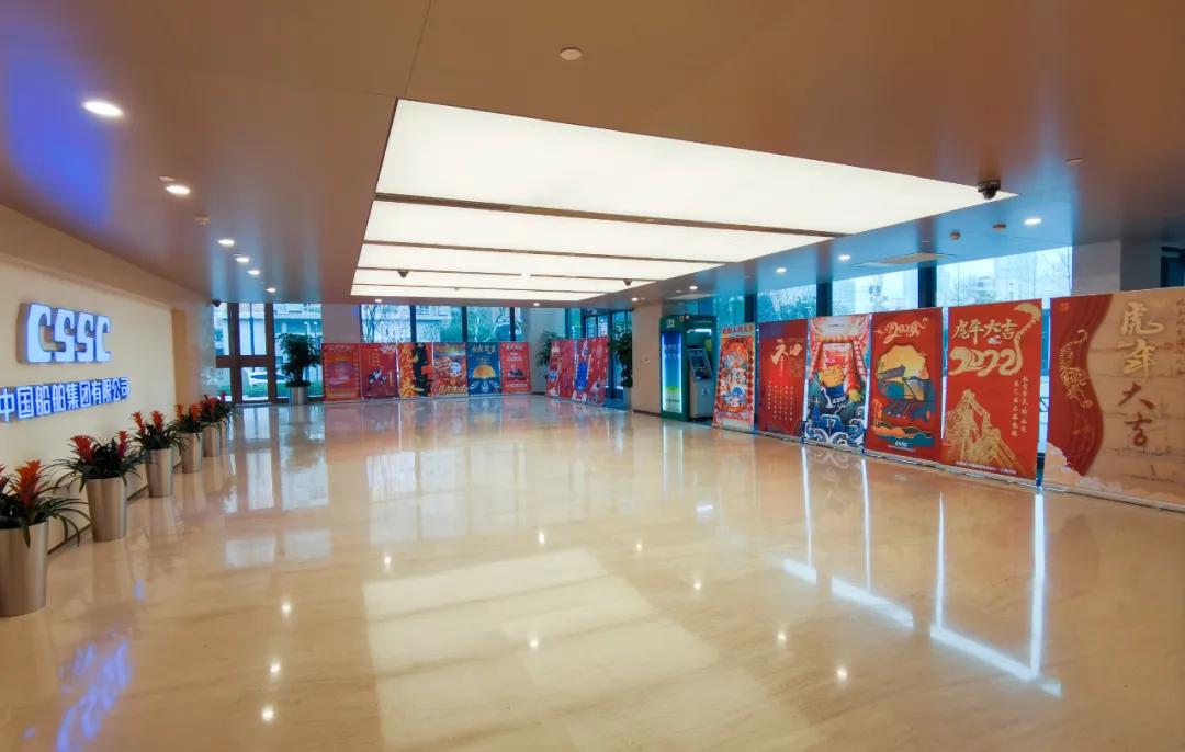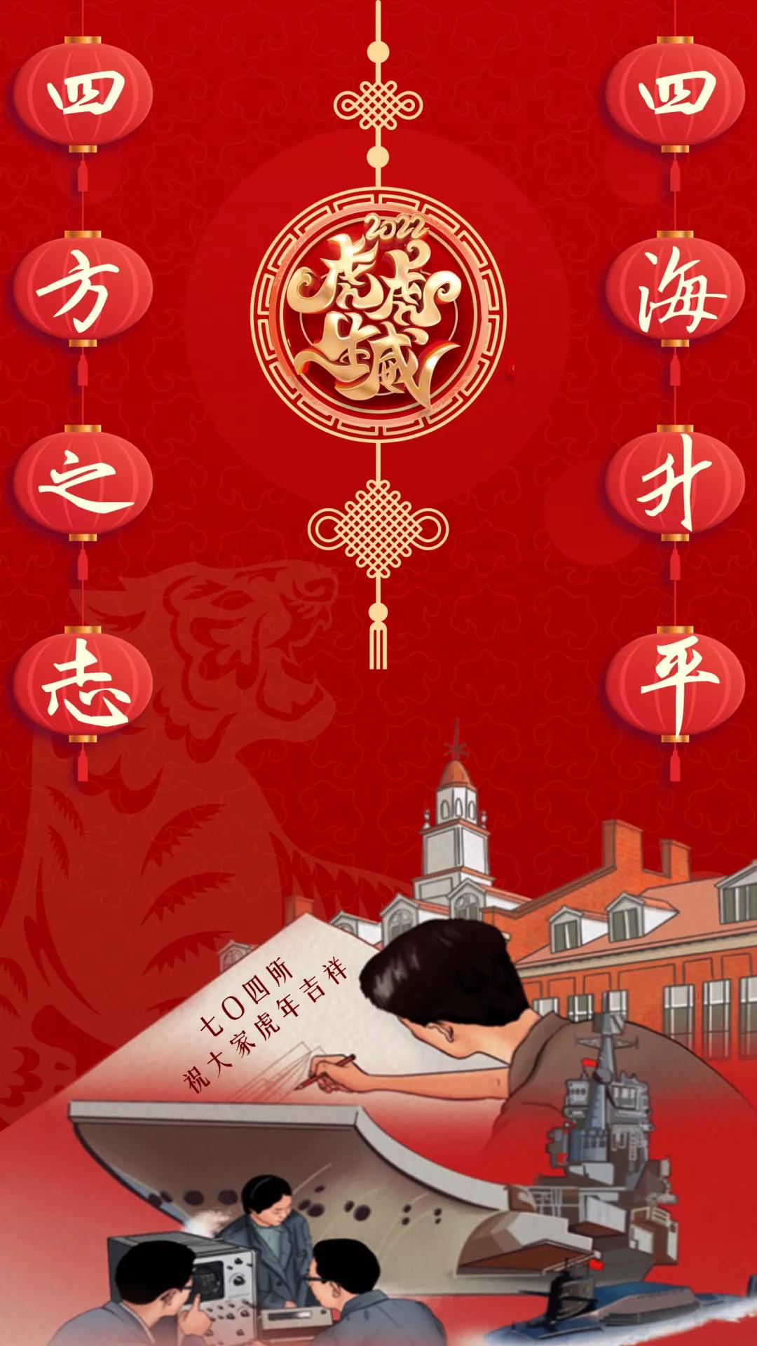 以中國紅為主色調(diào),運用傳統(tǒng)剪紙手法結合鏤空設計,寓意揭開虎年新篇章,映入眼簾的艦艇乘風破浪、浩浩蕩蕩,傳遞系統(tǒng)工程研究院/中船電科建設強大海軍的信心和決心!