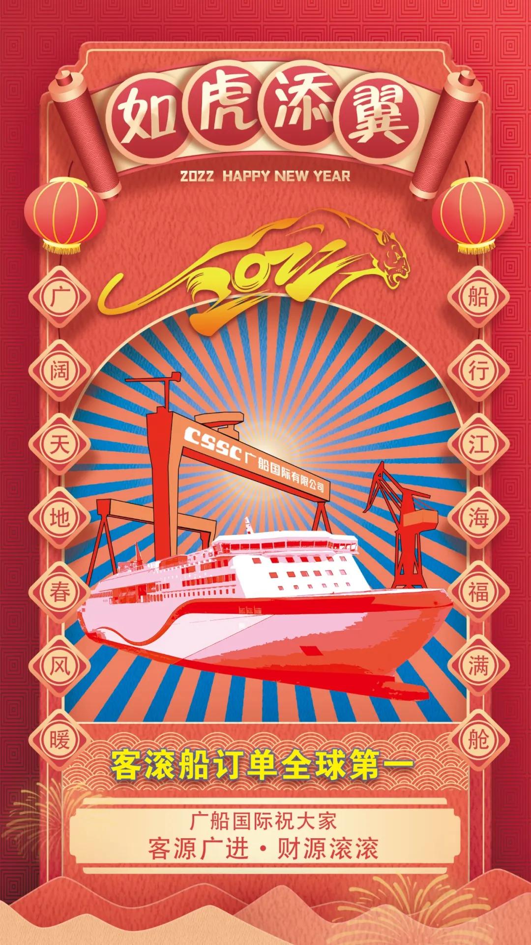 以門為前景,郵輪在海上乘風破浪,寓意中國首制大型郵輪建造能取得開門紅!以紅色為背景,表達新年喜慶的節(jié)日氛圍,也祝福祖國郵輪產(chǎn)業(yè)的發(fā)展紅紅火火,蒸蒸日上!