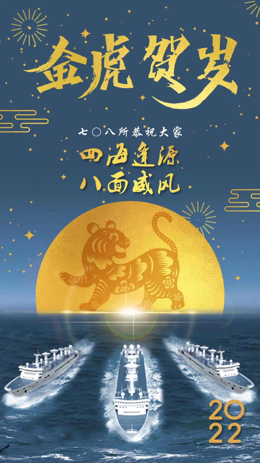 海報以七〇八所自主研發(fā)設計的遠望號船隊、金虎、星空、月亮為元素創(chuàng)作,彰顯祖國浩瀚海疆、無垠星空的安寧祥和。四十余年來,遠望號船隊劈波斬浪,守護著祖國的花好月圓。從遠望一號至遠望七號,凝結著幾代中國船舶人的智慧和汗水,堅守一方“浮動國土”。