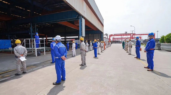 4月25日,根據(jù)上海市經(jīng)信委和中國(guó)船舶集團(tuán)關(guān)于分批有序推動(dòng)企業(yè)復(fù)工復(fù)產(chǎn)的部署要求,經(jīng)崇明區(qū)政府和相關(guān)疾控專家的專項(xiàng)檢查及工作指導(dǎo),中國(guó)船舶集團(tuán)旗下滬東中華造船長(zhǎng)興造船基地實(shí)現(xiàn)復(fù)工復(fù)產(chǎn)。
