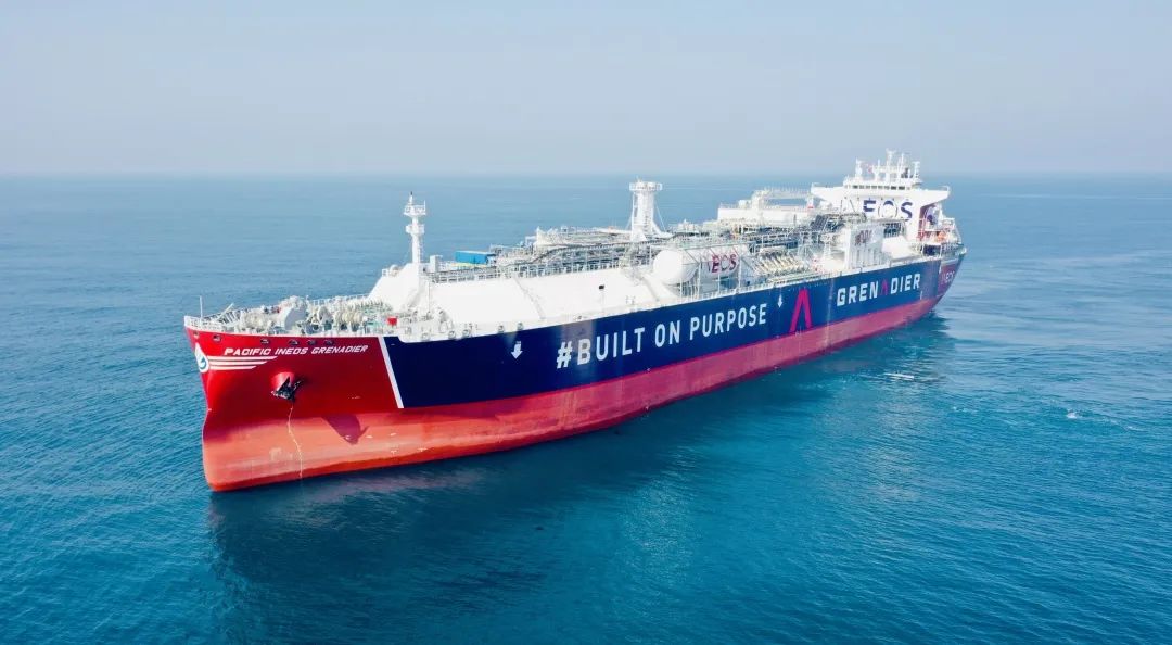 5月16日,中國(guó)船舶集團(tuán)旗下江南造船為浦銀租賃和山東海洋集團(tuán)下屬太平洋氣體船(香港)控股有限公司(PACIFIC GAS)建造的99000立方米B型艙超大型乙烷運(yùn)輸船(VLEC)“PACIFIC INEOS GRENADIER”號(hào)交付。
