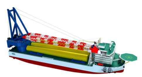 該船船長(zhǎng)186米,寬48米,型深16米,滿載排水量約90000余噸。起重機(jī)采用單舷側(cè)布置設(shè)計(jì),起吊高度可達(dá)主甲板以上145米,相當(dāng)于50層摩天大廈。還配備有DP2級(jí)動(dòng)力定位系統(tǒng),可實(shí)現(xiàn)深遠(yuǎn)海快速、精確定位。能夠在海上風(fēng)電場(chǎng)進(jìn)行各項(xiàng)風(fēng)電工程作業(yè),主要包括10兆瓦及以下海上風(fēng)機(jī)的基座、支撐塔架、機(jī)艙及葉片的吊裝和風(fēng)機(jī)基礎(chǔ)等施工作業(yè),以及其他海上吊裝或支持作業(yè)。