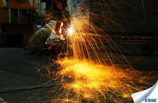 我不知道你是誰,我卻知道你為了誰。中國船柴宜柴公司鋼構(gòu)廠一名電焊工為了保節(jié)點、搶進(jìn)度,正在加班加點焊接產(chǎn)品。