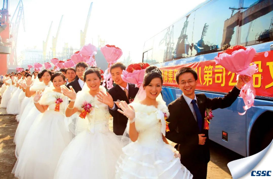 黃埔文沖舉辦的青年集體婚禮將黃埔文沖的船元素、船文化融入到婚禮中,既隆重?zé)崃叶趾喖s文明。