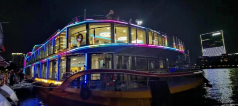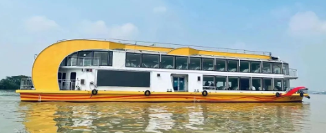 “廣游19”配置3015kWh純鋰電池驅(qū)動(dòng),Z形全回轉(zhuǎn)舵槳推進(jìn),經(jīng)濟(jì)航速下可滿(mǎn)足7小時(shí)續(xù)航要求。船體上建采用大面積玻璃幕墻,具有開(kāi)闊的觀光視野,可360度觀賞珠江日景夜景,可提供江景游覽、娛樂(lè)餐飲、會(huì)議招待、婚禮、音樂(lè)舞會(huì)、年會(huì)等綜合服務(wù)。