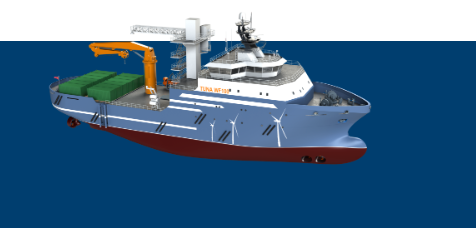 在海上風電運維船舶中,運維效率和運維能力更高的專業(yè)運維母船近年來在國外發(fā)展較快,國內(nèi)市場也開始布局設(shè)計建造。上船院開發(fā)的TUNA WF60/100型海上風電運維母船已形成完整的設(shè)計方案,適合快速投入建造。其船型具備功能強、效率高、倉庫容量大、人員安全舒適、拓展能力強、更符合國內(nèi)風場需求等優(yōu)點。