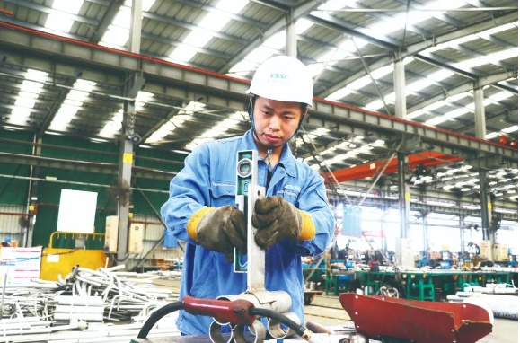 安排完一天的工作計(jì)劃后,中國船舶集團(tuán)有限公司旗下廣船國際龍穴管業(yè)加工部有色管工段班長李秋斌開始對一段管子進(jìn)行加工。