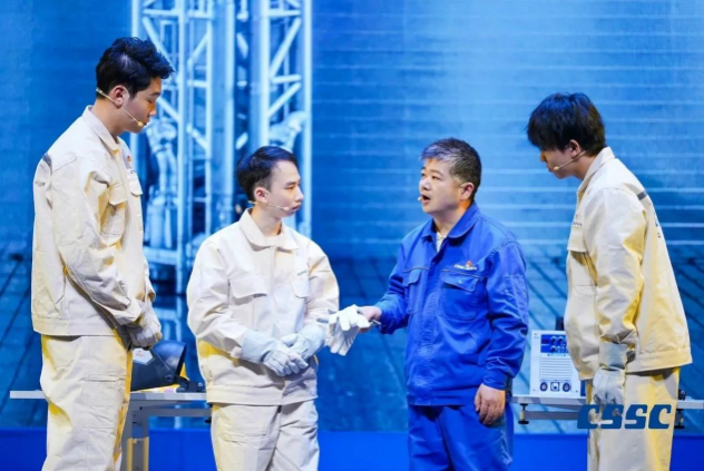 現(xiàn)場,來自中國船船集團(tuán)江南造船(集團(tuán))有限責(zé)任公司、滬東中華造船(集團(tuán))有限公司、上海外高橋造船有限公司、中船動力(集團(tuán))有限公司和中國船舶集團(tuán)公司第七〇二研究所的青年職工將真實工作案例與理論原文結(jié)合,將“發(fā)展新質(zhì)生產(chǎn)力”作為工作方向與指引,將他們的造船故事親身演繹。故事從《船舶青年說》起航,共講述了五大篇章,分別為江南造船如何延續(xù)百年初心、滬東中華造船LNG船毫厘鑄匠心、七〇二所從“蛟龍”號到“奮斗者”號將深潛進(jìn)行到底、外高橋造船“愛達(dá)?魔都號”大型郵輪“4個120天”的極限挑戰(zhàn)、江南造船“鋼鐵心臟”工程師攻克大型作戰(zhàn)艦建造的不凡創(chuàng)新路,臺詞鏗鏘有力、情感真摯流淌,繪就了一幅精彩的中國船舶夢畫卷。