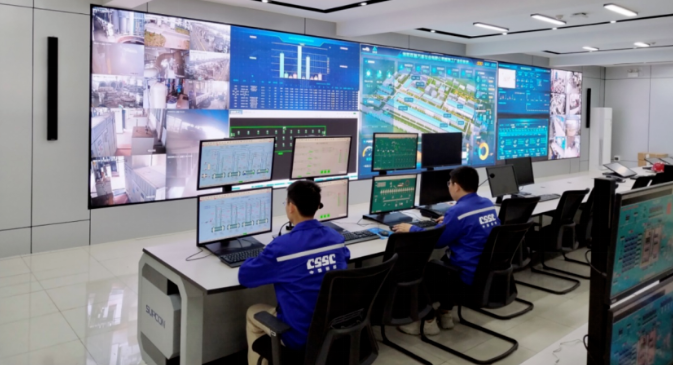 信息賦能,生產(chǎn)與數(shù)字技術(shù)深度融合。建立兩級運(yùn)營指揮中心,重要產(chǎn)線現(xiàn)場實(shí)時監(jiān)控,關(guān)鍵經(jīng)濟(jì)指標(biāo)及時更新;水處理產(chǎn)業(yè)建成船舶配套領(lǐng)域首個智能工廠,風(fēng)電產(chǎn)業(yè)打造成具有行業(yè)特色成型智能制造車間。