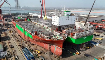 黃埔文沖切實(shí)增強(qiáng)自主開發(fā)能力,堅(jiān)持聚焦主建船型,持續(xù)推廣自主開發(fā)的“鴻鵠”集裝箱船和“海鯨”散貨船系列,成功打造1900TEU集裝箱船、3000TEU集裝箱船、2400TEU甲醇雙燃料集裝箱船和85000噸散貨船等明星船型,形成品牌迭代升級和譜系化;緊抓船舶行業(yè)綠色新能源的機(jī)遇,黃埔文沖以市場需求為導(dǎo)向,承接了多艘以甲醇、氨燃料等綠色能源為動(dòng)力的集裝箱船和散貨船訂單。
