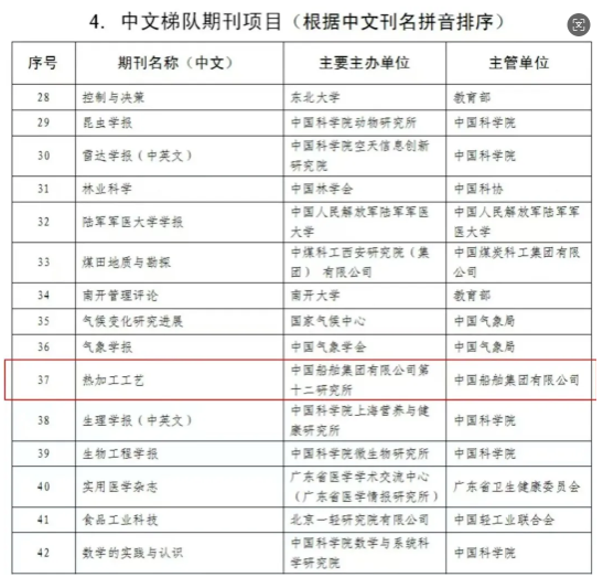 《熱加工工藝》能夠榜上有名,也是中國船舶行業(yè)與中國船舶集團(tuán)為學(xué)術(shù)研究陣地建設(shè)貢獻(xiàn)了強(qiáng)有力的力量。