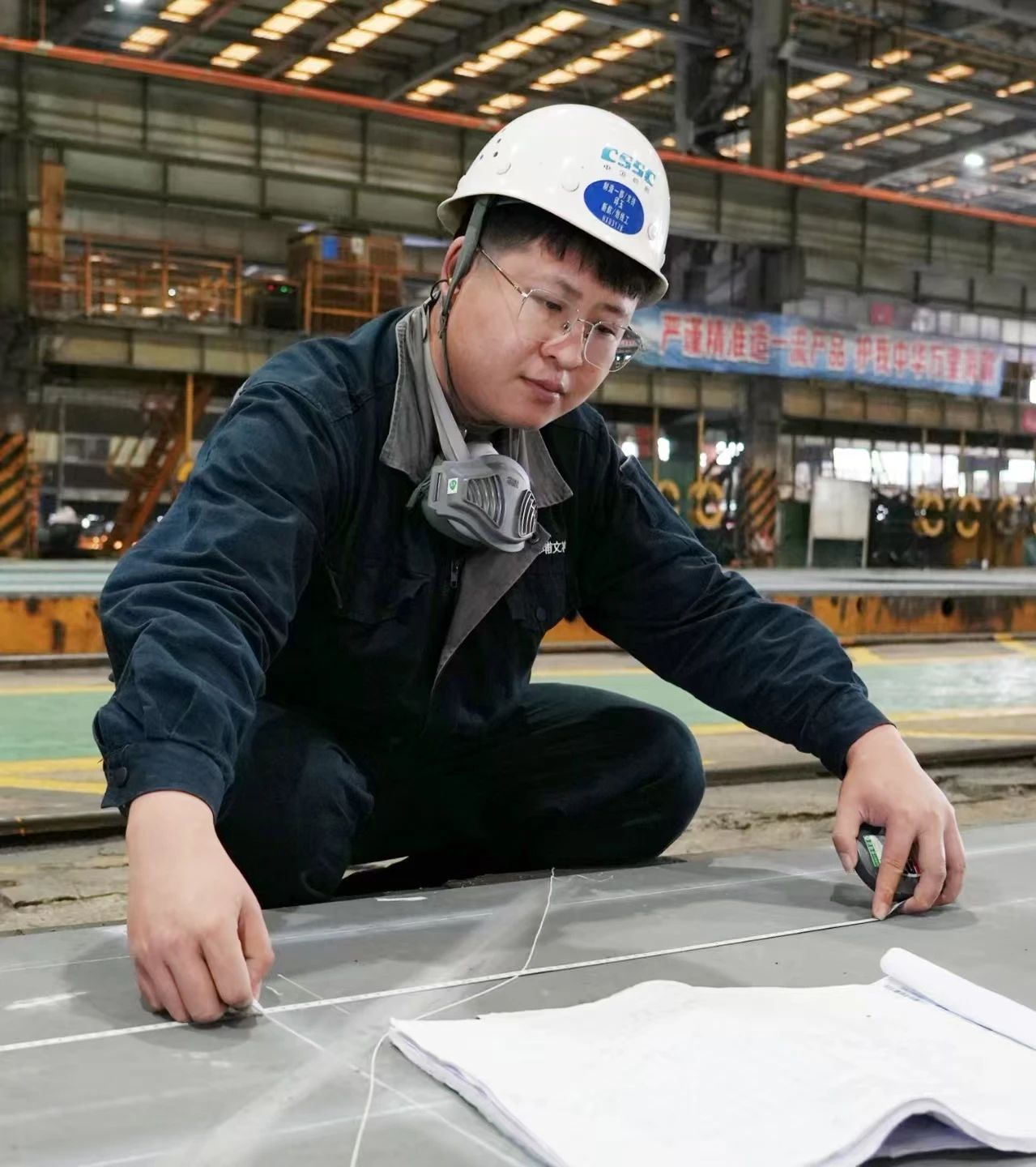 制造一部支持精控三班邱玉和他的同事們,就是這樣的一支團隊。他們從鋼板下料切割開始,始終跟進每一個生產(chǎn)環(huán)節(jié)的精度控制情況,隨時督促調(diào)整、修正,將船體各個結(jié)構(gòu)的定位基準(zhǔn)誤差控制在毫米級。
