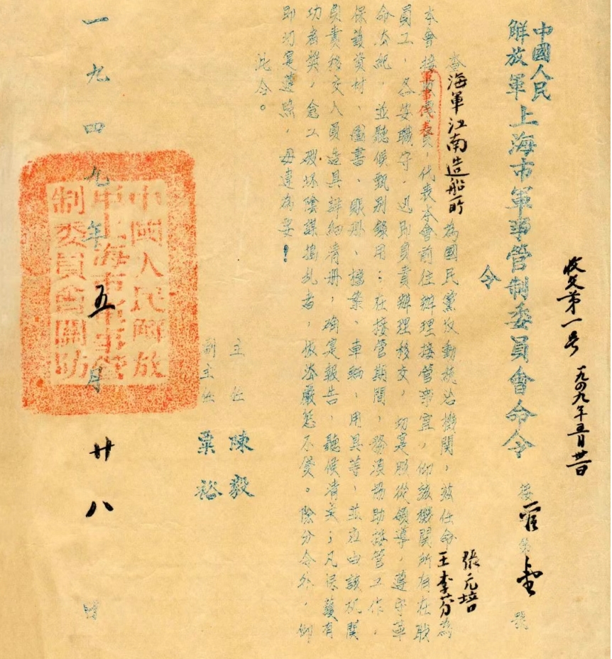 江南之于國(guó)家的戰(zhàn)略意義,周恩來(lái)曾這樣說(shuō)過(guò):“江南造船所是中國(guó)乃至亞洲最大的軍工企業(yè),要爭(zhēng)取在解放軍進(jìn)滬時(shí),安全、完整地交給人民?!?949年5月27日,上海解放。第二天上海市軍管會(huì)主任陳毅、副主任粟裕簽發(fā)第一號(hào)令,宣布接管海軍江南造船所。華東海軍司令員張愛(ài)萍來(lái)到江南造船所和工人們一起投入搶修造船設(shè)施的勞動(dòng)中,江南造船在廢墟上獲得新生。